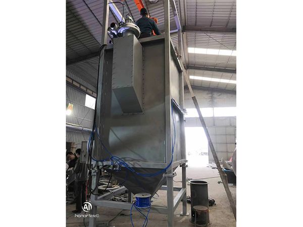 大袋拆包卸料機(jī)將噸袋包裝物料提升到進(jìn)料口,人工將包裝袋下料口拆開后,打開流量控制閥和附帶的振動下料裝置,促使包裝袋內(nèi)的粉粒狀物料通過自重落到下方料斗中,然后將干燥散料輸入正壓或負(fù)壓系統(tǒng),或直接輸入喂料機(jī)。